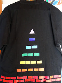 Se trata de una serie de camisetas que pinté hace un par de años. Ahora no las pinto con acrílicos, sino con pintura de tela que es menos rígida y me da muy buen resultado. También he cambiado cosas del diseño original como que todas fueran negras y que aparezca el nombre del chakra (ideas que no fueron mías y que no me gustaron).